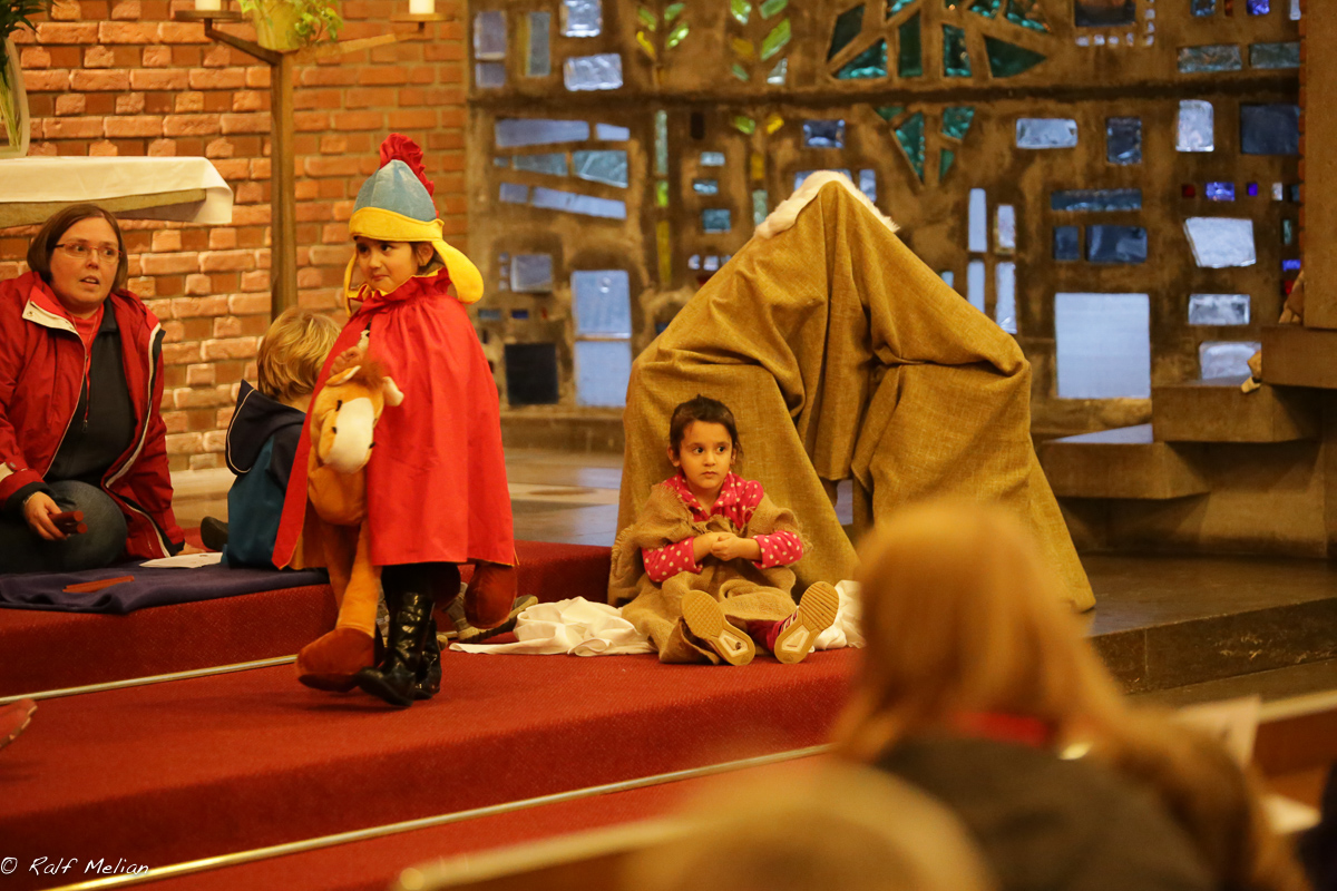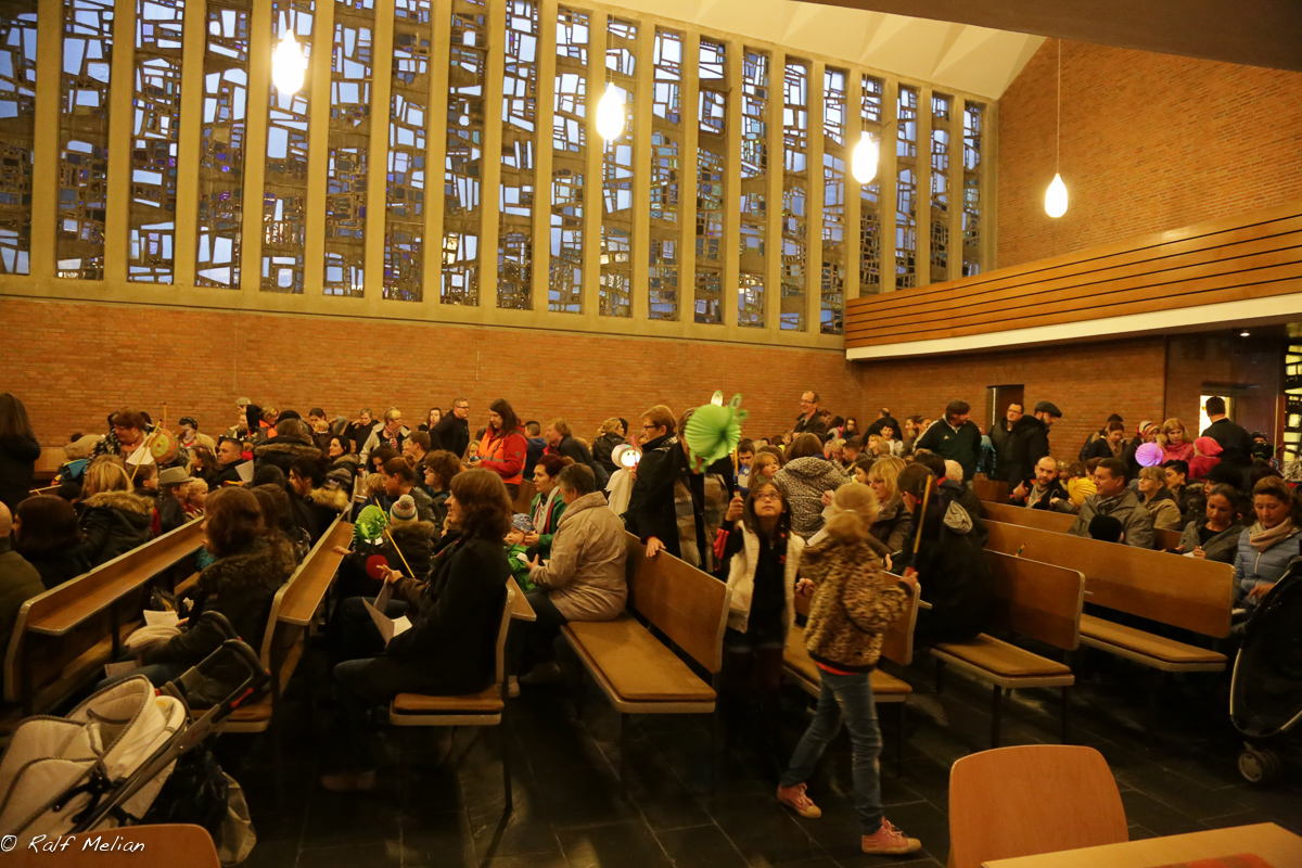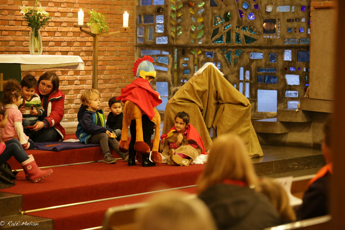 In diesem Jahr war es aber etwas anders, da die katholische Gemeinde Herz Jesu Hüllen auch an diesem Umzug teilnahm und die Legende vom St. Martin durch den Kindergarten in der evangelischen Lutherkirche aufführte.