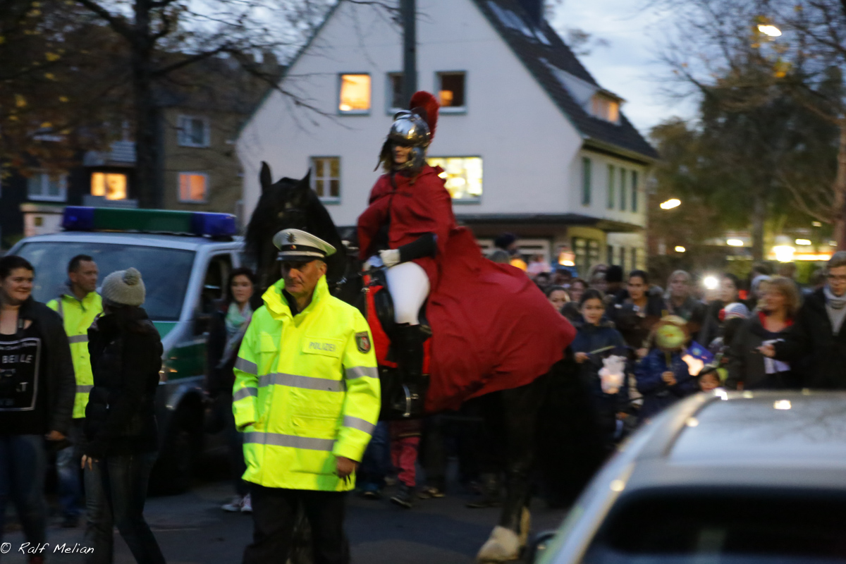Dazu führte der von einem St. Martin auf seinem Pferd angeführte Laternenumzug von der Lutherkirche zum Hof der Herz-Jesu-Kirche, wo der Abend bei einem Lagerfeuer endete.